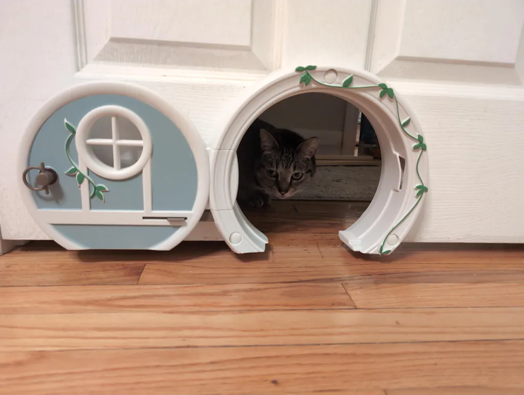 A beautiful little door, works just as portrayed! Installation went without a hitch, and my cat has taken to it immediately. So happy with the design, and even more so that I can finally close my door without blocking access in or out for my little gremlin~ I did contact the seller at one point because I was a bit concerned that the restock date of the pre-order kept getting pushed back, but they got back to me promptly with an explanation, and soon enough it was shipped - the wait was well worth it! Definitely will be recommending to friends who are also pet parents!